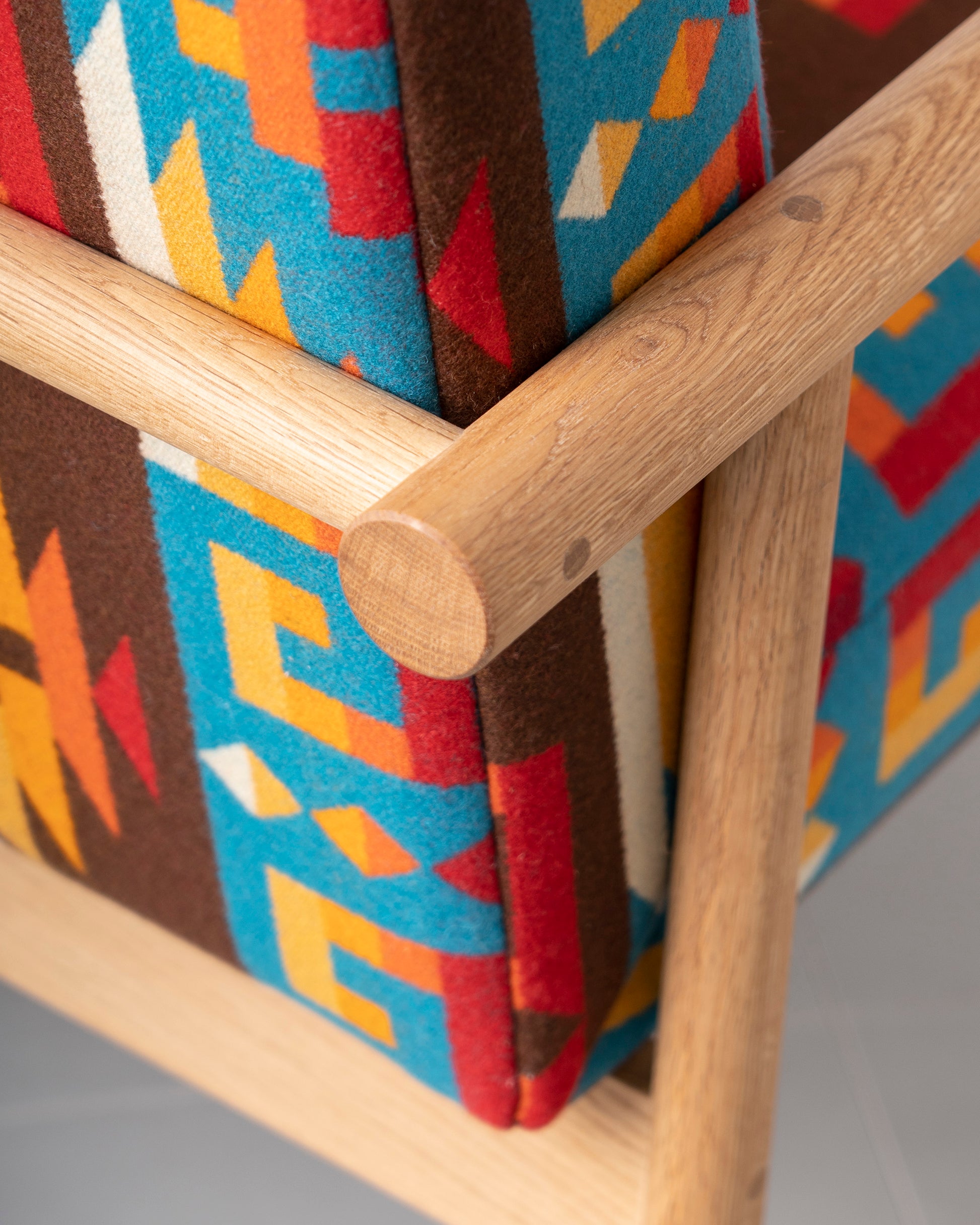 一人掛け。ペンドルトンファブリックを使用。*実際の商品は、掲載の写真と若干色味が異なる場合がございます。ご了承ください。足裏にはフェルトが付いています。ファブリックのサンプル送付希望、別注のご相談承ります。